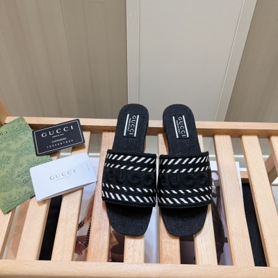 Gucci Slides denim handwritten Gucci logo women's Slippers
