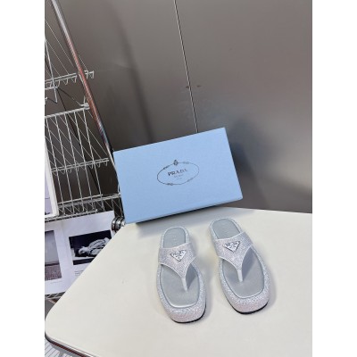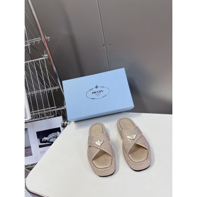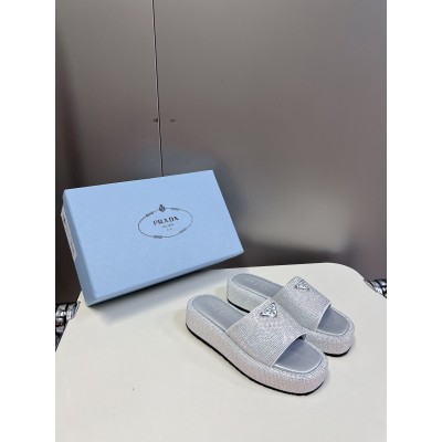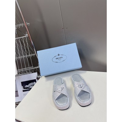 PRADA Platform Slippers crystal Women Summer Slides