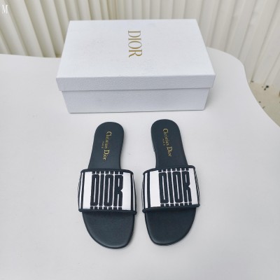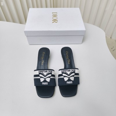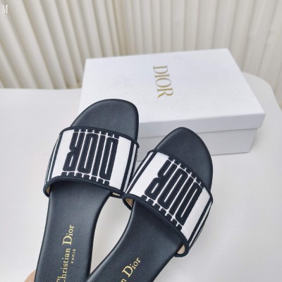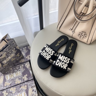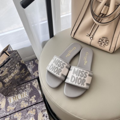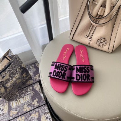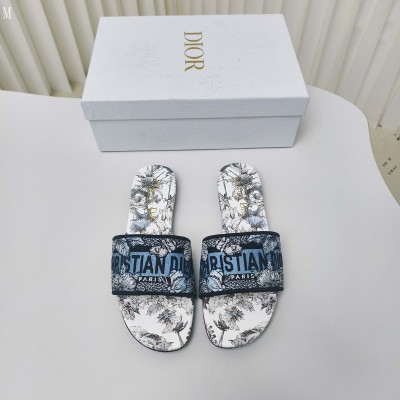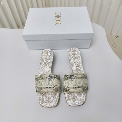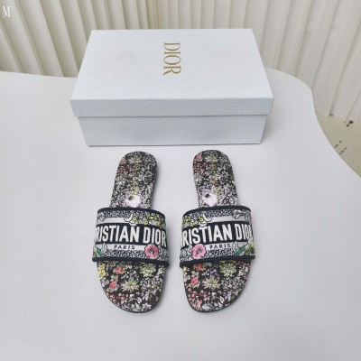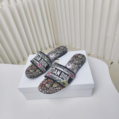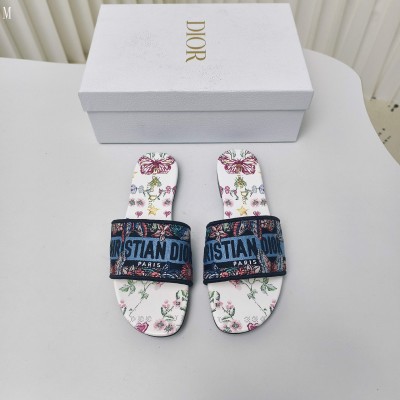 Dior Dway Slide Embroidered Cotton and Multicolor D-Floral Motif Slippers