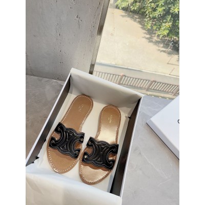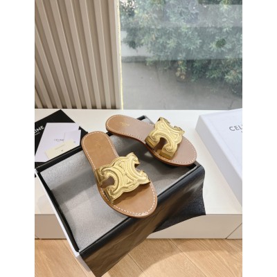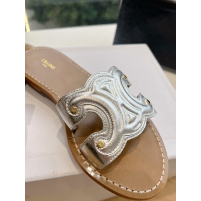 Celine Mules TRIOMPHE Metallic Texture Cow Leather Slippers
