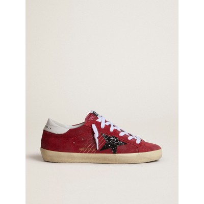 Women’s Super-Star in red suede with glitter star and white heel tab