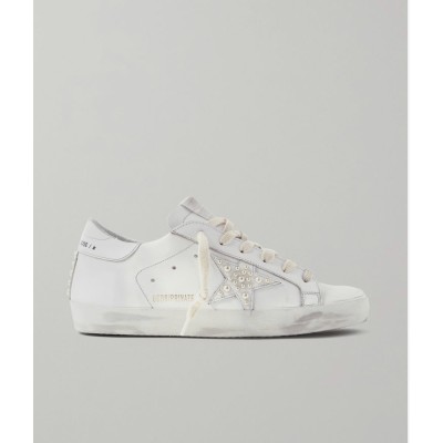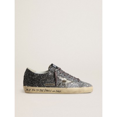 Women’s Super-Star LTD in white pony skin with brown glitter and white suede star