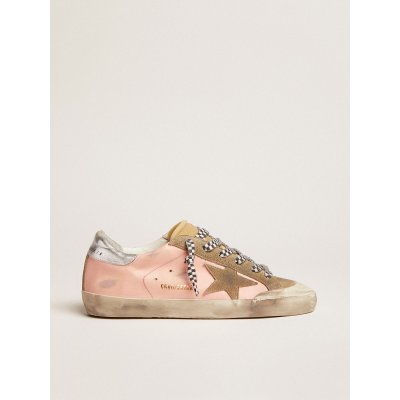 Super-Star LTD in pink leather with silver foiled leather star and pink leather heel tab