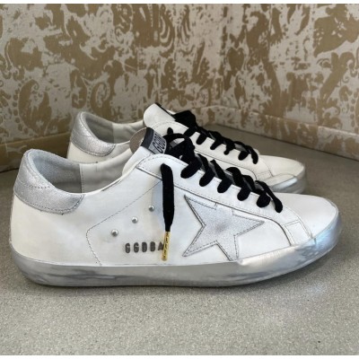 Super-Star in white leather with silver star and metal stud lettering