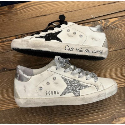 Customized Super-star Sneakers with black and silver glitter star