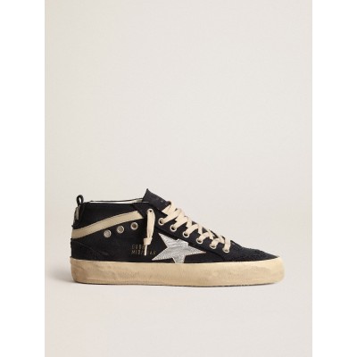 Women's Mid Star in black nappa with black glitter star and suede flash