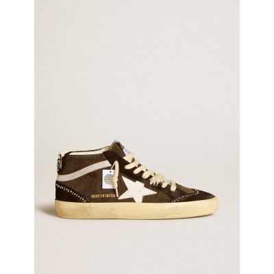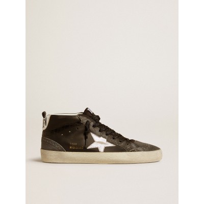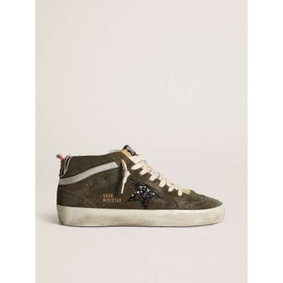 Women’s Mid-Star in olive-green suede with black glitter star and pony skin heel tab