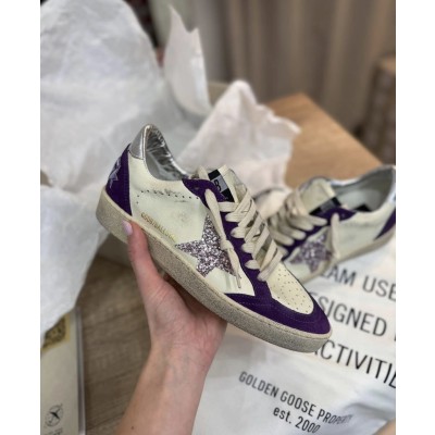 Women's Ball Star in nappa and purple velvet suede with glitter star