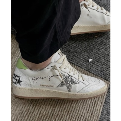 Ball Star Sneaker in white leather wiht Swarovski crystal star and heel tab