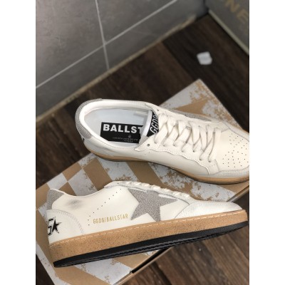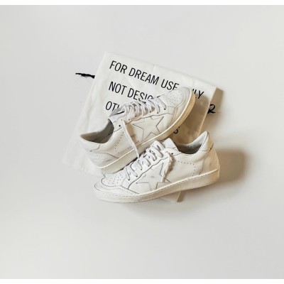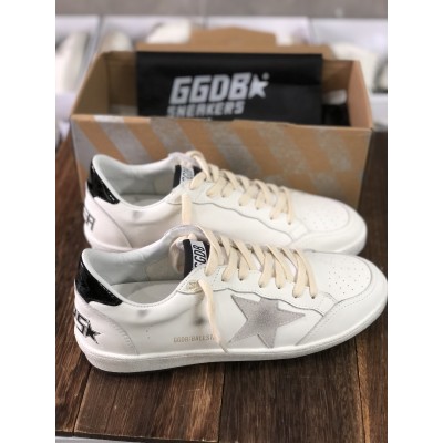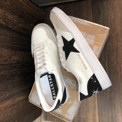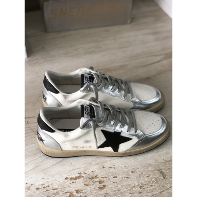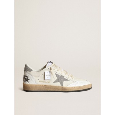Ball Star Sneaker in white leather with black leather and glitter heel tab