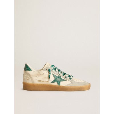 Women's Ball Star LTD in nappa with green crocodile-print leather star