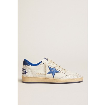 Women's Ball Star in white nappa with bright blue metallic leather star and heel tab