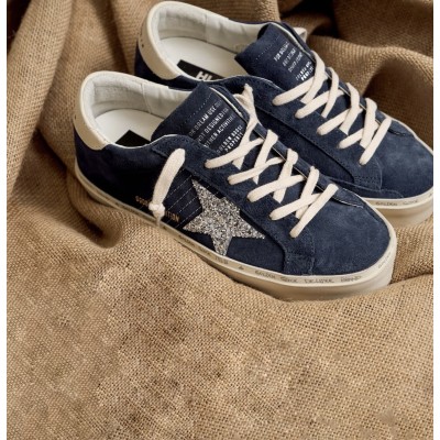Hi Star in nappa con stella in cristalli Swarovski e talloncino in pelle blu scuro