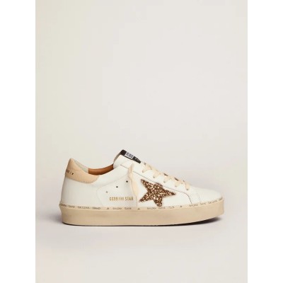 Golden Goose Hi-Star leather sneakers with leopard-print calf hair