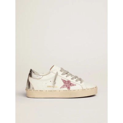 Hi Star in white nappa with pink suede star and glitter heel tab