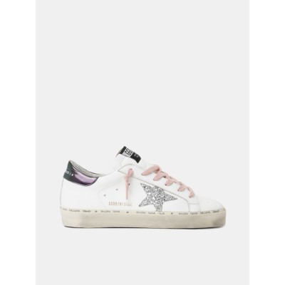Hi Star sneakers with silver laminated leather heel tab and pink glitter star