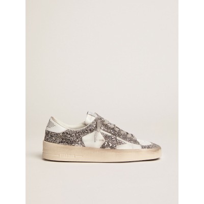 Stardan Woman in écru nappa leather with gold glitter star and heel