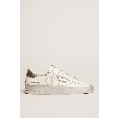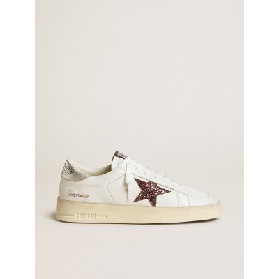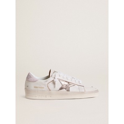 Stardan in nappa leather with metallic silver leather star and pink suede heel tab