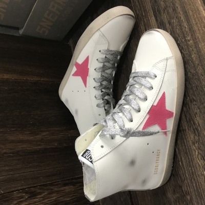 Women's Francy LAB in white leather with hot pink star and silver lace