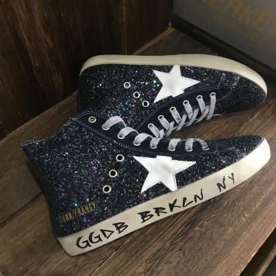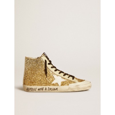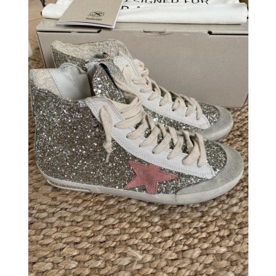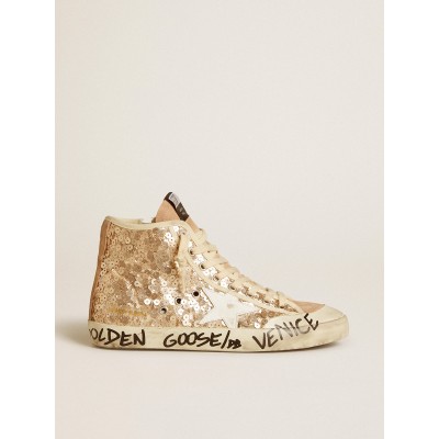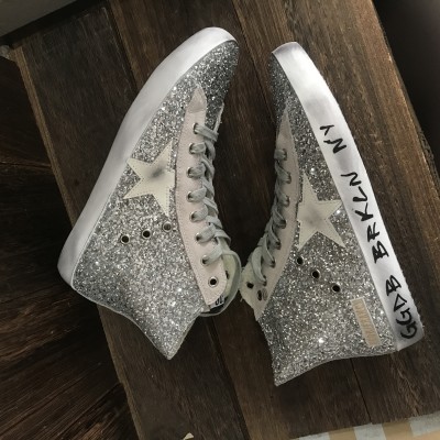 Francy sneakers with sequins and handwritten lettering on the outsole