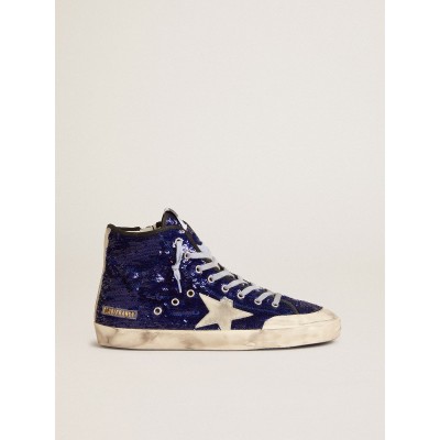 Women's Francy Penstar in bright blue sequins with ice-gray suede star