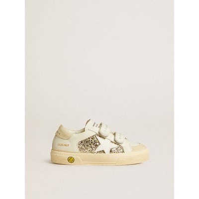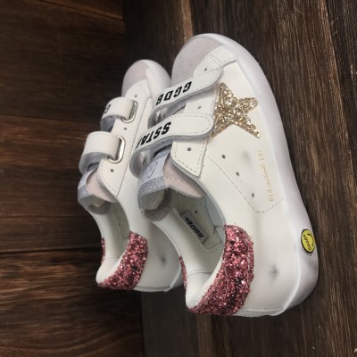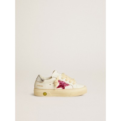 May Junior with fuchsia glitter star and metallic leather heel tab