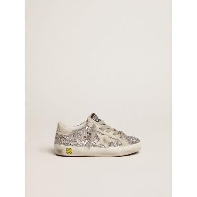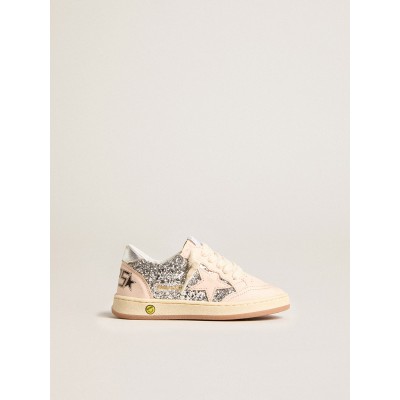 Junior Ball Star in glitter with silver metallic leather heel tab