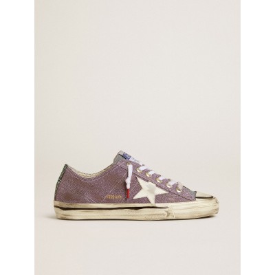 Women’s V-Star LAB in lilac leather and glitter with white star and silver glitter tongue