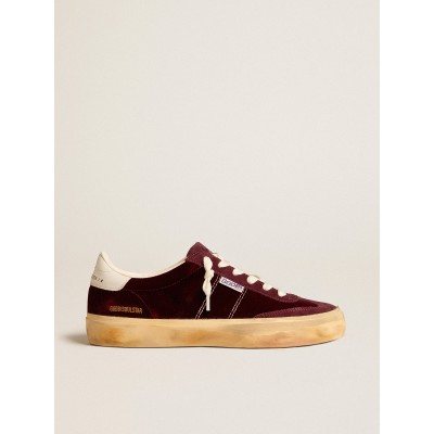 Soul Star in burgundy velvet with white leather heel tab