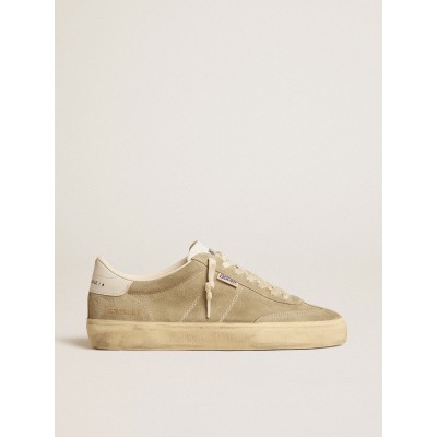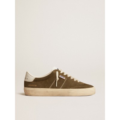 Soul Star in green suede with white leather heel tab and tongue