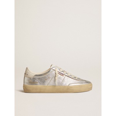 Soul Star in metallic silver leather with white leather heel tab