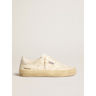 Soul Star in dove-gray suede with white leather heel tab and tongue