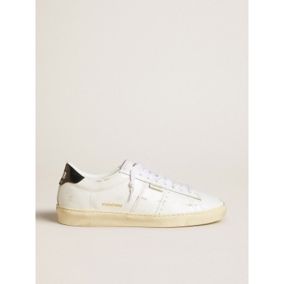 Matchstar in white leather with dark blue leather heel tab