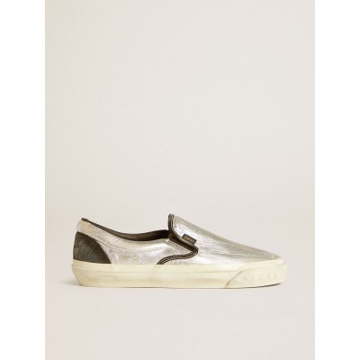 Men's VCE Penstar in metallic silver leather with black leather heel tab