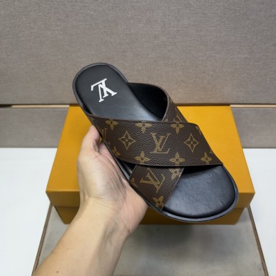 LV Pool Pillow Flat Comfort Mule Men's Miami Brown Slides