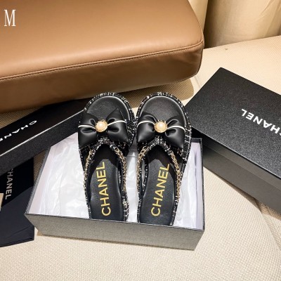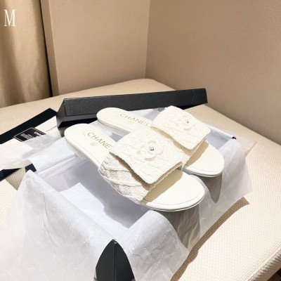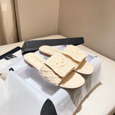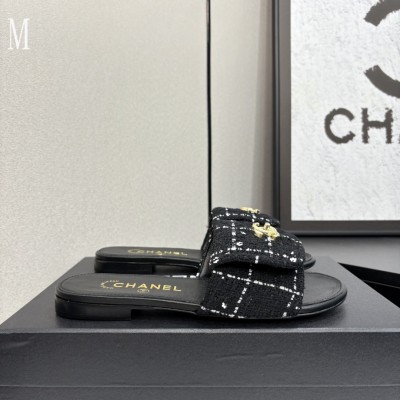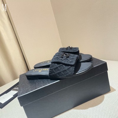 Chanel Flat Sandals CC Logo Women Summer tweed Slippers