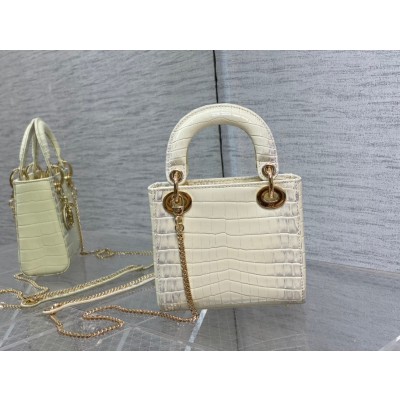 Lady Dior Bag In White Croco